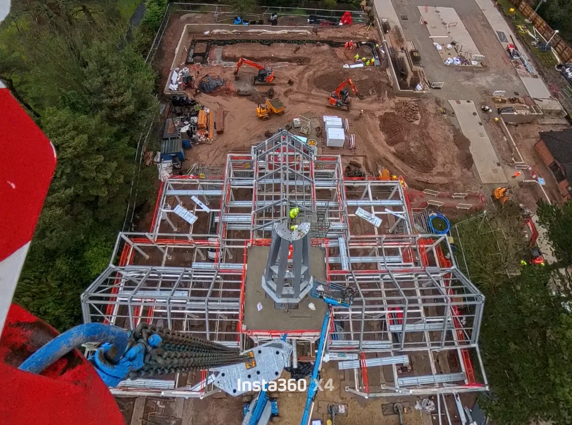 McLaren Construction Midlands and North has marked a significant milestone on the Birmingham England Temple project for The Church of Jesus Christ of Latter-Day Saints, with steelwork now progressing well across the scheme and the Temple spire successfully installed.